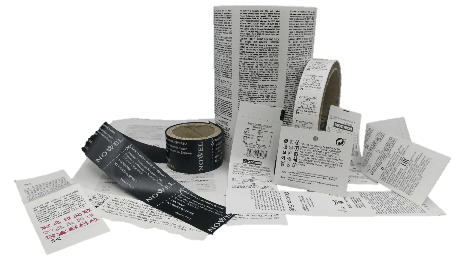En etiqueta textil para posterior anexado en ropa o complementos.